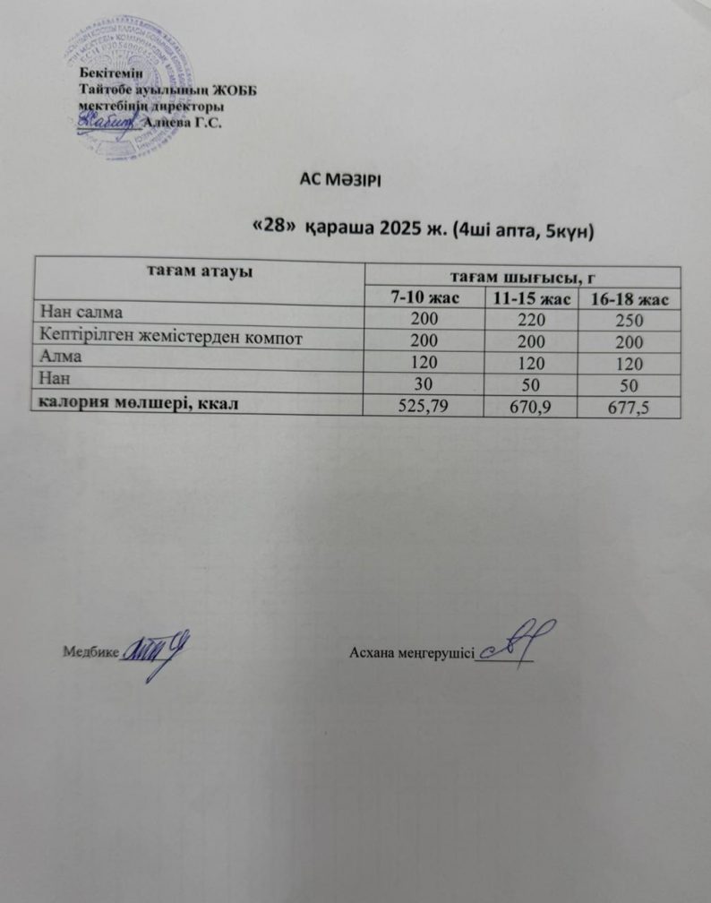 Мектептегі тамақтану 28.11.2025ж
