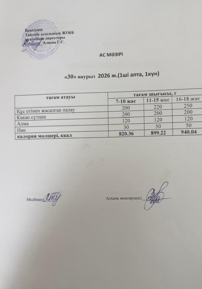 Мектептегі тамақтану 30.03.2026