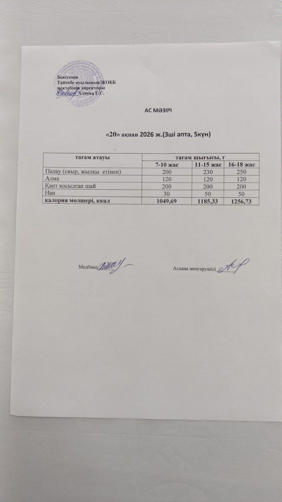 Мектептегі тамақтану 20.02.2026ж