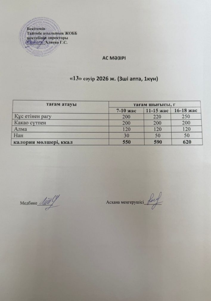 Мектептегі тамақтану 13.04.2026ж