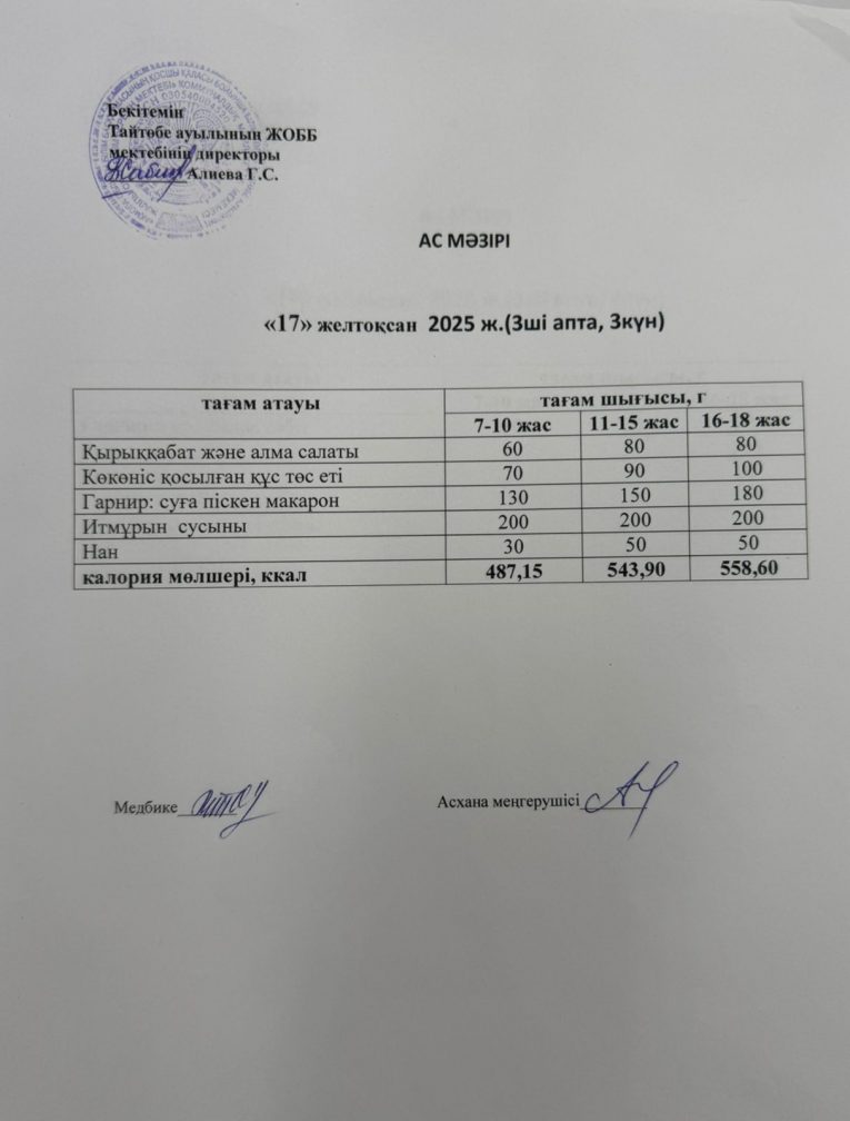 Мектептегі тамақтану 17.12.2025ж