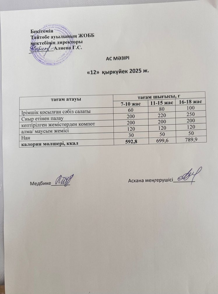 Мектептегі тамақтану 12.09.2025ж