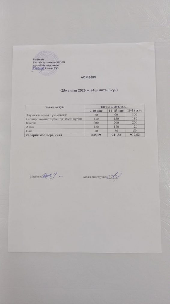 Мектептегі тамақтану 25.02.2026ж