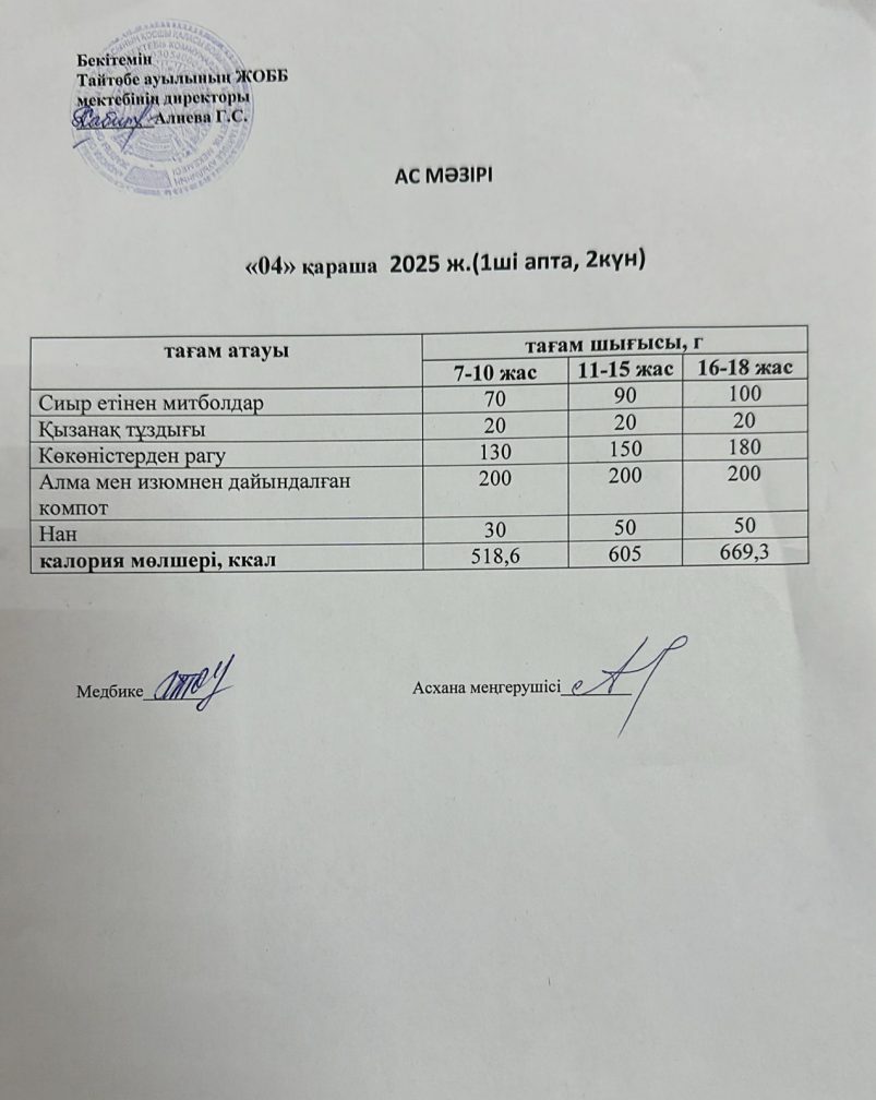 Мектептегі тамақтану 04.11.2025ж