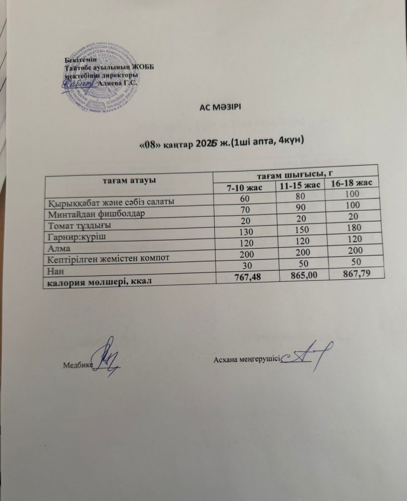 Мектептегі тамақтану 08.01.2026ж