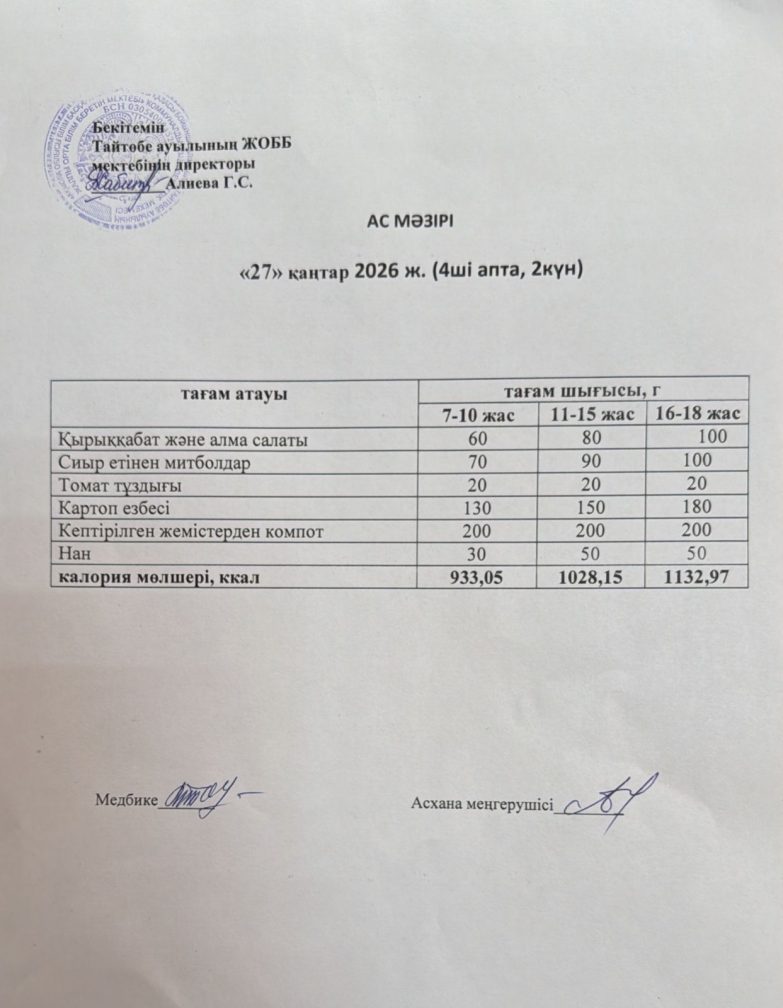Мектептегі тамақтану 27.01.2026ж