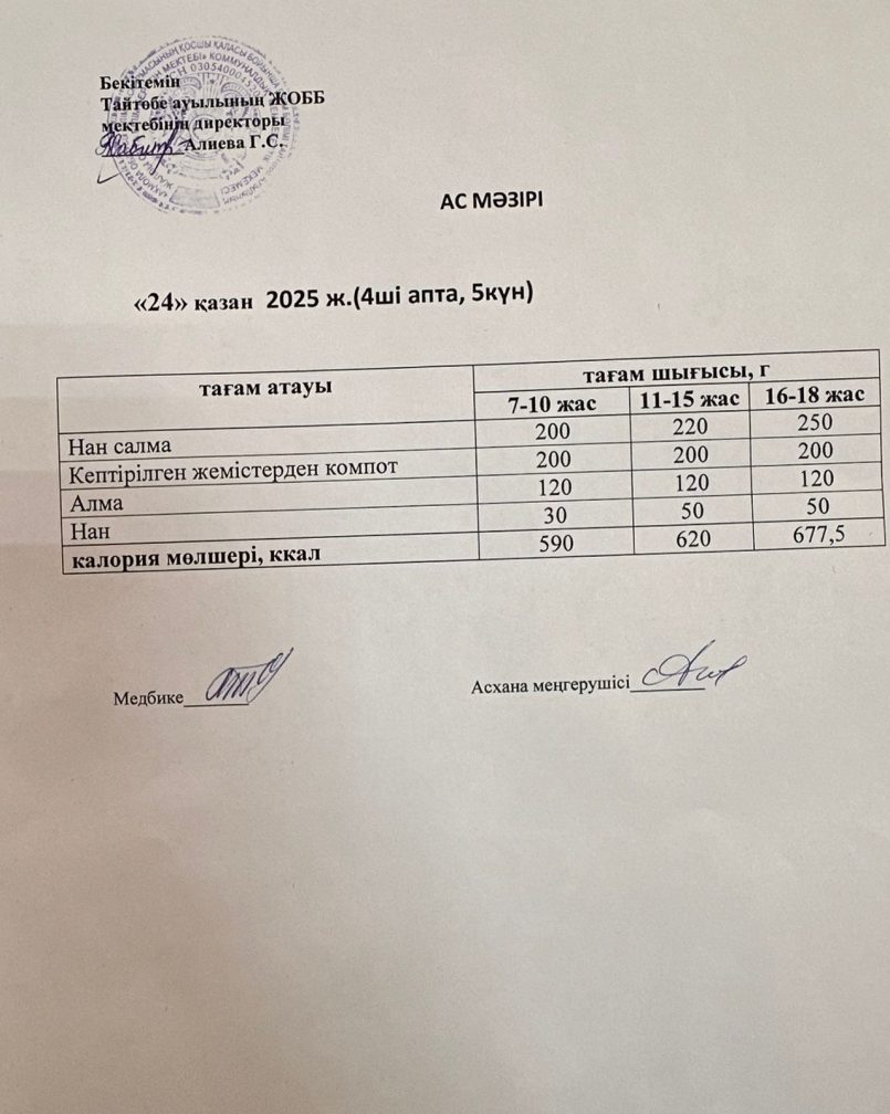 Мектептегі тамақтану 24.10.2025ж
