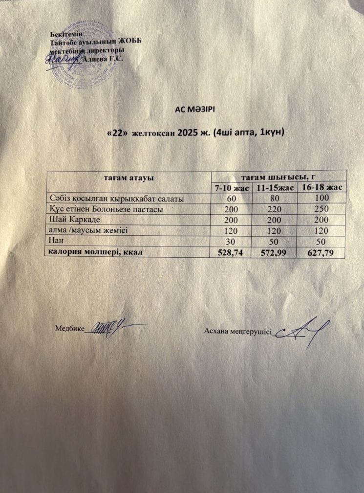Мектептегі тамақтану 22.12.2025ж