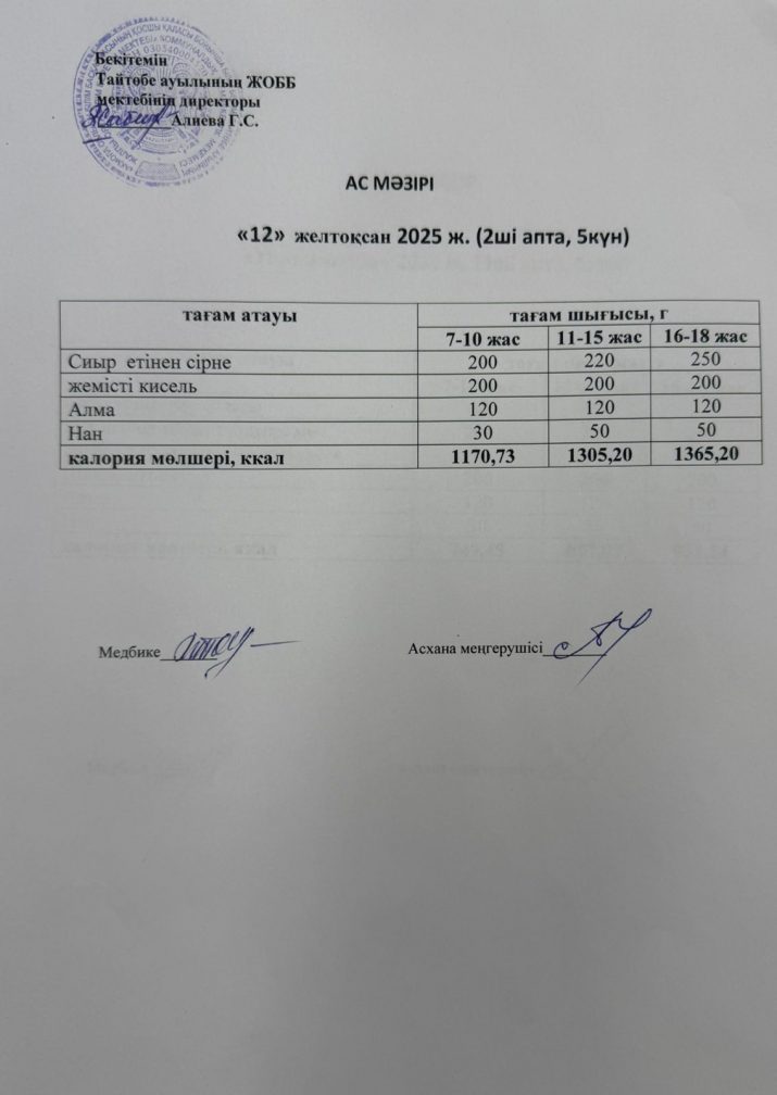 Мектептегі тамақтану 12.12.2025ж